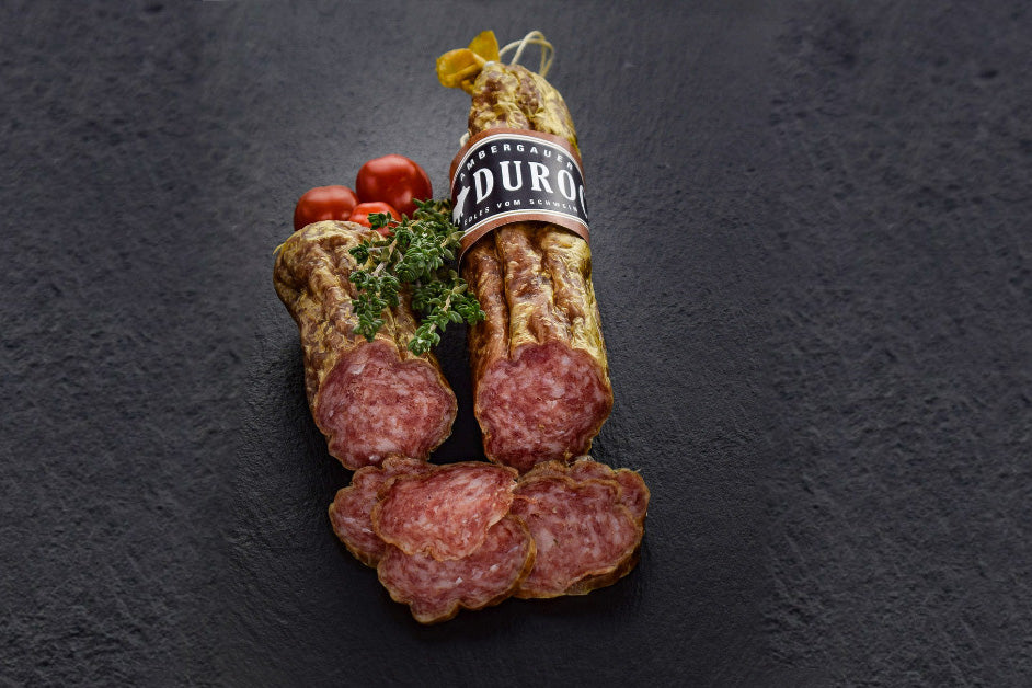 Zutaten: Schweinefleisch, Speisesalz, Gewürze, Knoblauch, Traubenzucker, Maltodextrin, Konservierungsstoff: E252, Buchenholzrauch