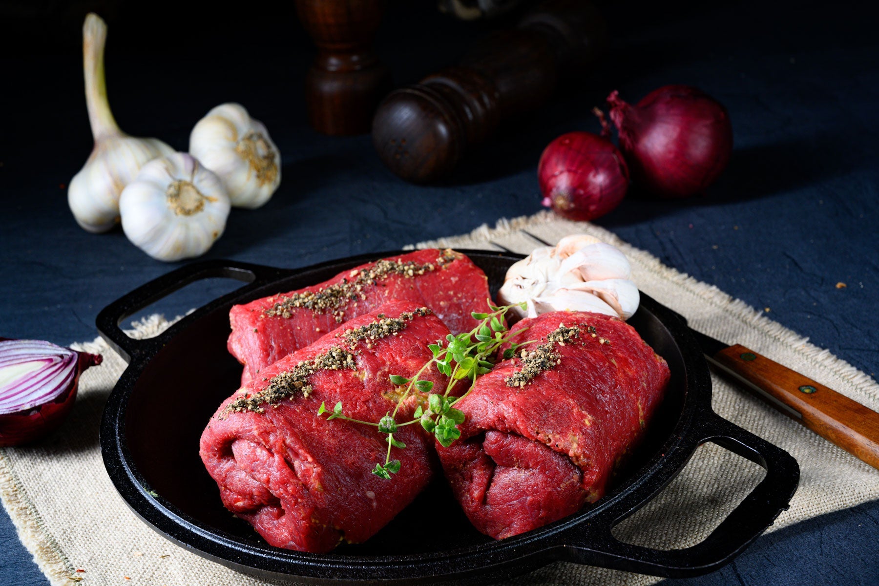 Klassiker der deutschen Küche: Unsere Weide-OX Rouladen sind mager, zart und perfekt zum Schmoren. Mindestens 2,5 Wochen am Knochen gereift.