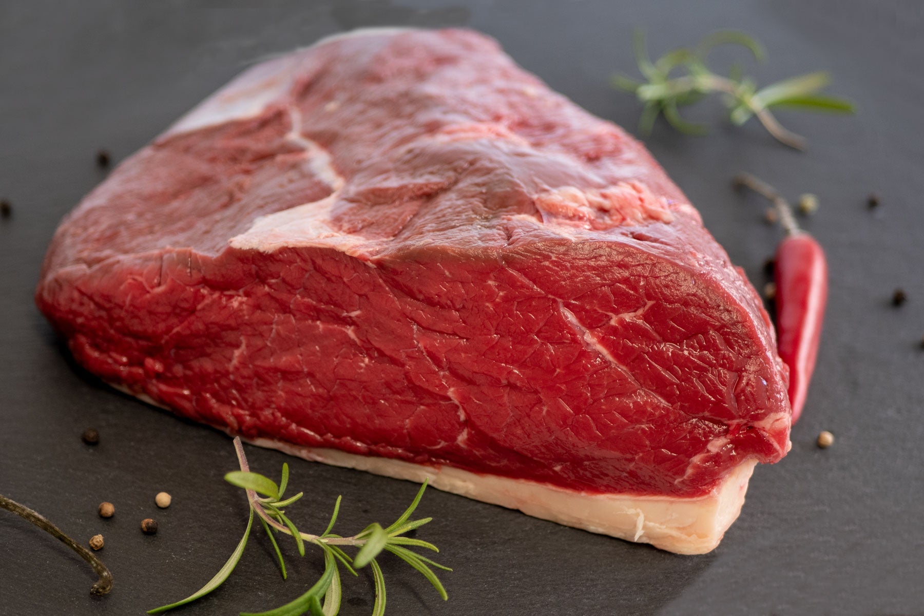 Der Tafelspitz ist ein traditionelles Stück der Rinderkeule mit feiner Marmorierung und charakteristischer Fettschicht. Er eignet sich hervorragend zum klassischen „gekochten Rindfleisch“ mit Meerrettich, aber auch für moderne Schmorgerichte oder als Braten.